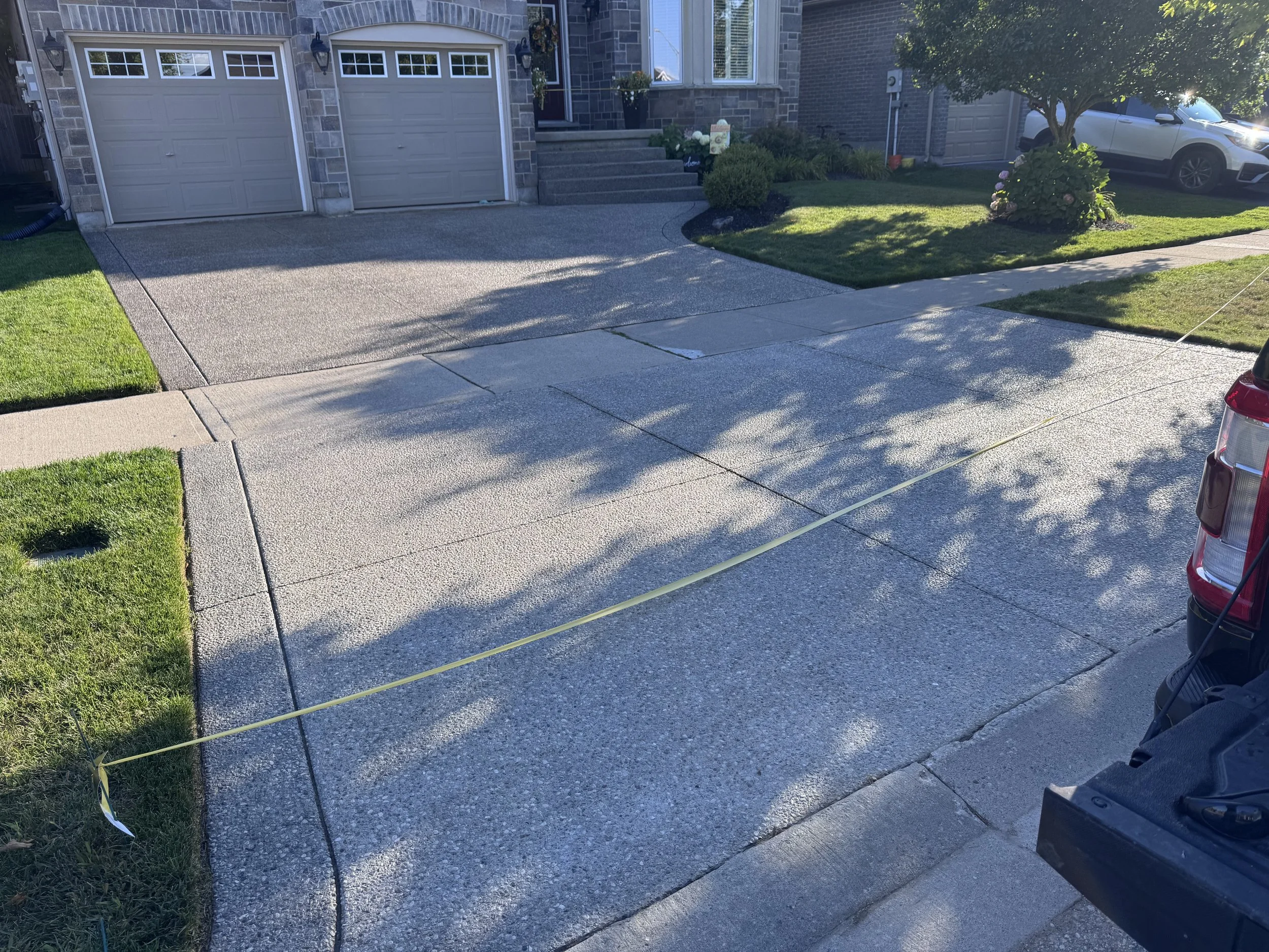 Use use caution tape or flagging tape to block off any sealed concrete to ensure no foot or vehicle traffic goes on it while curing.